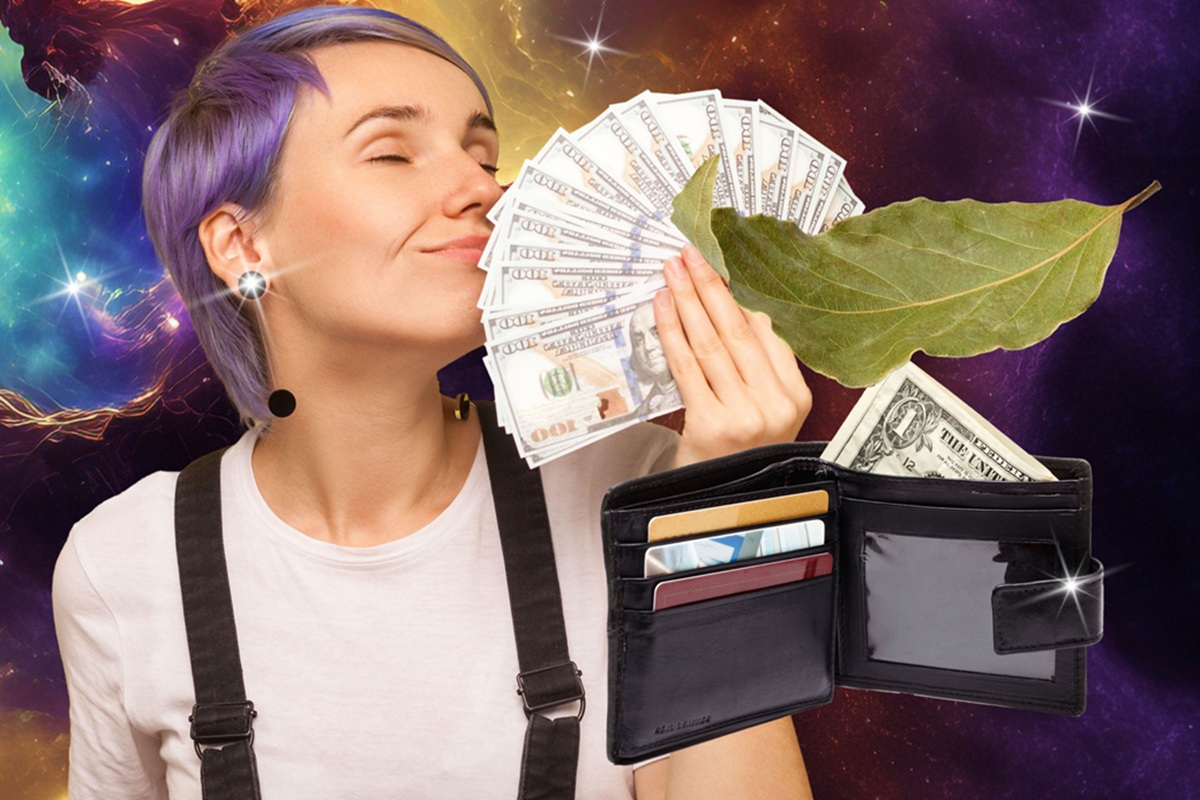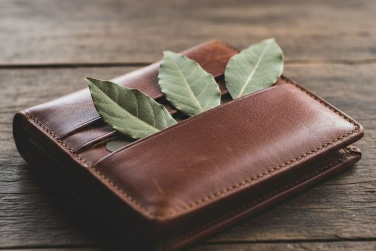 Where to place the bay leaf inside the wallet to maintain balance